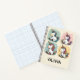 Dieses personalisierte Mädchenheft verfügt über ein Set von 4 skizzierten Einhorndoodles in einem skurrilen, spielerischen Stil mit fröhlichem Set gegenüber pastellfarbenen Hintergründen.