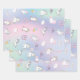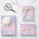 Niedliche farbige Einhornpastellblume Regenbogen D Geschenkpapier Set
