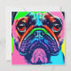 CuteCclorful Illustration eines mit AI erstellten Mops. Diese moderne Postkartenillustrierung ist ein ideales Geschenk für Hunde-, Mops- und Pop-Kunstliebhaber.