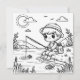 Ein niedlicher kleiner Junge, der in einem See auf einer Camping-Ausflug-Farbseite angeln. Farbe mir Karte für Kinder!