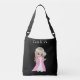 Niedliche Fee mit Blume auf der schwarzen Tote Tasche. Text kann personalisiert sein.