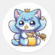 Niedliche Feenkatze frisst rohen Honig Runder Aufkleber