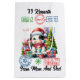 Eine fröhliche Kuh in einer Weihnachtsmannmütze sitzt neben einem schön dekorierten Weihnachtsbaum. Umgeben von farbenfrohen Geschenken und Feiertagstickern erweckt die fröhliche Szene den typischen Geist des Geschenks und Feierns der Festsaison.
