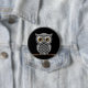 Niedliche flaumige graue Eule mit den Gläsern, Button