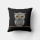 Niedliche flaumige graue Eule mit Gläsern mit Kissen