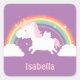 Niedliche Fliegende Einhorn- und Regenbogenmädchen Quadratischer Aufkleber
