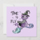 Dieses niedliche Design zeichnet sich durch eine fliegende niedliche lila Hexenkatze mit dem Satz "Zeit zum Fliegen" aus. Es ist perfekt für ein Halloween-Fest.