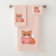 Niedliche Fox & Monogramm auf hellkornrosa Badhandtuch Set
