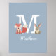 Dieses niedliche blaue Poster ist mit einem Baby-Fuchskuchen aus Wäldern und einem Hasen ausgestattet, das auf beiden Seiten des Monogramms und des Namens sitzt. Entwickelt von Thisisnotme©