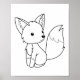 Niedlicher kleiner Fuchs mit großen Ohren und buschigem Schwanz sitzt in einer hundeähnlichen Pose. Zur einfachen Färbung.