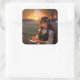Niedliche Frau im Stile trauriger Anime bei Sonnen Quadratischer Aufkleber