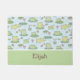 Ein niedliches Muster von Fröschen, Libellen, Lilienpolster, Kattteln und anderen Pflanze, die in einem Teich gefunden werden. Personalisieren Sie mit dem Namen des Kindes, um eine bezaubernde personalisierte Tür für das Zimmer für die Kleine zu machen.