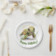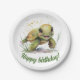 Ein sehr niedliches Set von bearbeitbaren Text-Papier Teller mit einer Illustration einer lächelnden und fröhlichen Schildkröte. Personalisieren Sie es mit Ihren ganz eigenen Grüße!
