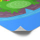 Dieser niedliche, fröhlich grüne Frosch sitzend auf einem lila Lilienpolster ist hell und bezaubernd. Viel amphibischer Spaß gezeichnet in fröhlichem Cartoon Stil.