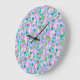 Niedliche Froschkunst große Uhr mit rosa Hintergru