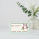 Niedliche Frühlingseule auf einer Zweigstelle mit minzgrünen karierten GrenzVisitenkarten, mit einer niedlichen Frühlingseule in lila und dunkelbraun, die eine Blume in ihrem Schnabel (Rechnung) auf einem Zweig mit grünen Blätter an der minzgrünen karierten Grenze hält. Ein bezauberndes, feminines, dekoratives Design für Eukalyptusliebhaber. Kunstwerk von Trina Clark.