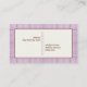 Niedliche Frühlingsohle auf einer Zweigstelle mit lila karierten GrenzVisitenkarten, mit einer niedlichen Frühlingsheule in lila-dunkelbraun, die eine Blume in ihrem Schnabel (Rechnung) auf einem Zweig mit grünen Blätter an lila kariert Grenze hält. Ein bezauberndes, feminines, dekoratives Design für Eukalyptusliebhaber. Kunstwerk von Trina Clark.