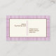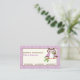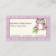 Niedliche Frühlingsohle auf einer Zweigstelle mit lila karierten GrenzVisitenkarten, mit einer niedlichen Frühlingsheule in lila-dunkelbraun, die eine Blume in ihrem Schnabel (Rechnung) auf einem Zweig mit grünen Blätter an lila kariert Grenze hält. Ein bezauberndes, feminines, dekoratives Design für Eukalyptusliebhaber. Kunstwerk von Trina Clark.