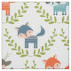 Niedliche Füchse und Hirsche mit grünem Krautmuste Stoff