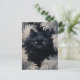Niedliche Furry Black Cat umgeben von weißen Feder Postkarte