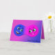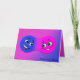Eine blaue (männliche) Disc und eine rosa (weibliche) Disc, die sich zu einer neuen Einheit verschmelzen - einem liebenden Paar. Ein lächelndes Gesicht auf jeder Scheibe starrt an seinem Partner. Das Bild wird auf einem rosa und blauen Hintergrund überlagert. Fügen Sie Ihren eigenen Text hinzu. Sie können die Textfarbe ändern.