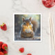 Ein niedliches Eichhörnchen hält einen Geburtstagskupcake mit wirbelfreiem Zuckerguss und strahlt mit leuchtenden Augen sanft aus.