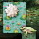 Niedlicher Frosch mit einem Party hatte und geblasen eine Blume. Ein Geschenk mit der Nummer 13 und Cupcakes sitzen auf den umliegenden Lilienplätzchen zum Geburtstagsfrosch ist sicher zu haben, Toad of fun.