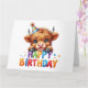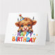 Herzlichen Glückwunsch zur Geburtstagskarte. Niedliche, Adorable Baby Highland Kuh mit einem Party Hut. Eine bezaubernde Kindergeburtenkarte. Diese Karte ist leer für Ihre eigene Nachricht. Auch als digitaler Download für den Transfer zu anderen Produkten verfügbar.