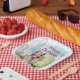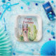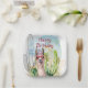 Aquareller Llama mit herzförmigen Gläsern und einem Geburtstagshut mit Wüstenlandschaft im Hintergrund.
