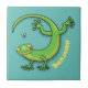 Niedliche Geckogrün-Grüße mit Bug-Cartoon Fliese