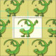 Niedliche Geckogrün-Grüße mit Bug-Cartoon Stoff