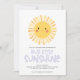 Niedliche lustige gelbe Sonnenschein-Illustration Geburtstagsfeier Einladung. Yellow Regenbogen Illustration Typografie Design. Teil einer Sammlung.