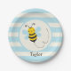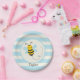 Coole, Retro, farbenfrohe Jung's Niedlich Yellow & Black Bee on Baby Blue Stripes Design auf weißen Streifen, gestreifte Muster mit Vintagem Gefühl. Perfektes Geschenk für Baby, Kleinkind, Kinder, Kinder, Jugendliche oder Erwachsene! Das Design wird durch Hinzufügen eines Kindernamens oder benutzerdefinierten Textes personalisiert. Besuchen Sie unseren Shop, Birthday Party House, für mehr große personalisierbare Jungen und Mädchen Produkte und Zimmer Dekoration!