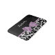 Ein niedliches, schwarz-weißes Giraffenprint-Badematte mit einem gürtelförmigen, lila Band, das in einen weiblichen Bogen gebunden ist. Personalisieren Sie dieses hübsche Tierdesign, indem Sie Ihren Namen hinzufügen. Flachbild, nicht eigentlicher Bogen.