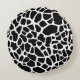 Ein niedliches, schwarz-weißes Giraffenkissen mit einem lila, gürtelbewehrten Band, das in einen femininen Bogen gebunden ist. Personalisieren Sie dieses hübsche Tierdesign, indem Sie Ihren Namen hinzufügen. Die Rückseite hat ein stilvolles Giraffenmuster. Flachbild, nicht eigentlicher Bogen.