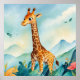 Niedliche Giraffe im Kinderzimmer der Berge Poster