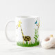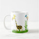 Diese niedliche Giraffe-Tasse lässt Ihre Kinder Giraffe lächeln, die im Garten mit grünem Gras und Schmetterlingen gezeigt wird. Diese Tasse wäre ein nachdenkliches Geschenk für Kleinkinder oder Mädchen. Mein Design wurde aus der Grafik des öffentlichen Bereichs erstellt.