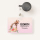 Benennen Sie Abzeichen mit einem niedlich zeichnend in Aquarellen einer Mama- und Babygiraffe. Die Muttergiraffe ruht sich auf der Giraffe des Babys, liebend und liebenswert. Hübscher rosa, gelber, grüner Aquarellbouquet unter diesem Lieblingspaar. Ein Farbverlauf, der mit einer weichen rosa Farbe erzeugt wird, die in eine hellpeachisch orangefarbene Farbe übergeht.