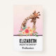Benennen Sie Abzeichen mit einem niedlich zeichnend in Aquarellen einer Mama- und Babygiraffe. Die Muttergiraffe ruht sich auf der Giraffe des Babys, liebend und liebenswert. Hübscher rosa, gelber, grüner Aquarellbouquet unter diesem Lieblingspaar. Ein Farbverlauf, der mit einer weichen rosa Farbe erzeugt wird, die in eine hellpeachisch orangefarbene Farbe übergeht.