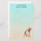 Papier aus Stationery mit niedlich zeichnend Aquarellen einer Mama- und Babygiraffe. Die Muttergiraffe ruht sich auf der Giraffe des Babys, liebend und liebenswert. Hübscher rosa, gelber, grüner Aquarellbouquet unter diesem Lieblingspaar. Ein Gradientenhintergrund mit einer zarten türkisblauen Farbe, die in eine sandbraune Farbe eingebettet ist.