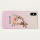 Casemate Telefongehäuse mit einem niedlich zeichnend in Aquarellfarben einer Mama- und Babygiraffe. Die Muttergiraffe ruht sich auf der Giraffe des Babys, liebend und liebenswert. Hübscher rosa, gelber, grüner Aquarellbouquet unter diesem Lieblingspaar. Ein Farbverlauf, der mit einer weichen rosa Farbe erzeugt wird, die in eine hellpeachisch orangefarbene Farbe übergeht.