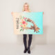 Eine Decke mit einer niedlichen zeichnend in Aquarellen einer Mama- und Babygiraffe. Die Muttergiraffe ruht sich auf der Giraffe des Babys, liebend und liebenswert. Hübscher rosa, gelber, grüner Aquarellbouquet unter diesem Lieblingspaar. Ein Gradientenhintergrund mit einer zarten türkisblauen Farbe, die in eine sandbraune Farbe eingebettet ist.