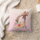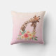 Ein Kissen mit einem niedlich zeichnend, in Aquarellen Mama- und Babygiraffe. Die Muttergiraffe ruht sich auf der Giraffe des Babys, liebend und liebenswert. Hübscher rosa, gelber, grüner Aquarellbouquet unter diesem Lieblingspaar. Ein Farbverlauf, der mit einer weichen rosa Farbe erzeugt wird, die in eine hellpeachisch orangefarbene Farbe übergeht.