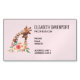Berufliche magnetische Visitenkarten mit niedlich zeichnend Aquarellen einer Mama- und Babygiraffe. Die Muttergiraffe ruht sich auf der Giraffe des Babys, liebend und liebenswert. Hübscher rosa, gelber, grüner Aquarellbouquet unter diesem Lieblingspaar. Heller rosa Hintergrund.
