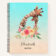 Ein personalisiertes Notizbuch mit einem niedlichen zeichn in Aquarellen einer Mama- und Babygiraffe. Die Muttergiraffe ruht sich auf der Giraffe des Babys, liebend und liebenswert. Hübscher rosa, gelber, grüner Aquarellbouquet unter diesem Lieblingspaar. Ein Gradientenhintergrund mit einer zarten türkisblauen Farbe, die in eine sandbraune Farbe eingebettet ist.