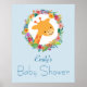 Niedliche Giraffe mit einer Blumengartendusche Poster