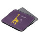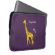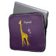 Personalisierte lila Giraffe Laptop-Hülle für ein Mädchen mit einer niedlichen Giraffe, die auf einer violetten Blume nibbelt und einige Blume mit seinem Schwanz hält, während Skaten mit Roller-Skaten, die Räder aus Blume, auf dunklem lila Hintergrund. Diese niedliche personalisierte Laptop-Hülle wird ein großartiges Geschenk für jemanden, der Giraffen, Cartoon Tiere und niedliche Illustrationen Lieben.