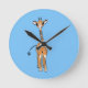 Niedliche Giraffe zeichnend, Safaritiere Runde Wanduhr
