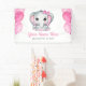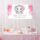 Niedlicher Baby Elefant mit rosa Banner/Backdrop Sign für Baby Dusche, Geburtstag.