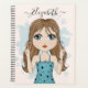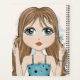 Ein super niedliches Mädchen, das mit den Fingern Friedenszeichen-Gesten macht. Die mit Augen, lang haarige brünette Cartoon-Grafik mit einem Aquarellgrauen und blauen Wolken. Teil meiner schönen Big eyes whimsical Art zeichn Serie. Großartig zu verbreiten Hoffnung, Harmonie, Mädchen Power, Freiheit, Freundschaft, freundliche Begrüßung, Akzeptanz, Ruhe, Schalom, etc. Illustration von Donna Leger handgezeichnet.
